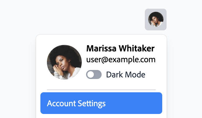 A menu trigger consists of a button or other trigger element combined with a menu displayed in a popover, with a list of menu items or sections inside. Users can click, touch, or use the keyboard on the button to open the menu.