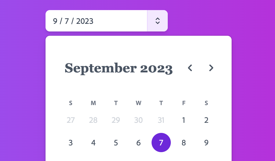 A DatePicker component styled with Tailwind CSS.