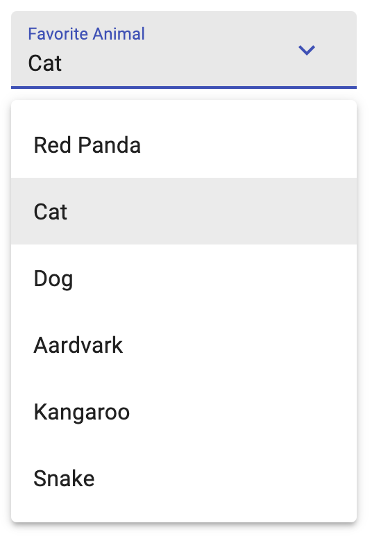 <ComboBox label="Favorite Animal" menuTrigger="focus">