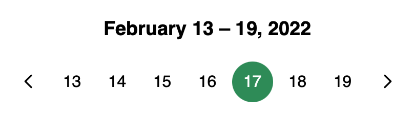 For simplicity, this example only displays a single month at a time. See the styled examples section for more examples with multiple months, as well as other time ranges like weeks.